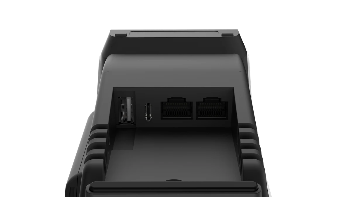 Socle de bureau A8900 Connectivité LAN et RS232 via USB Type CADytech. Le socle est inamovible, assurant une installation sécurisée et stable. |