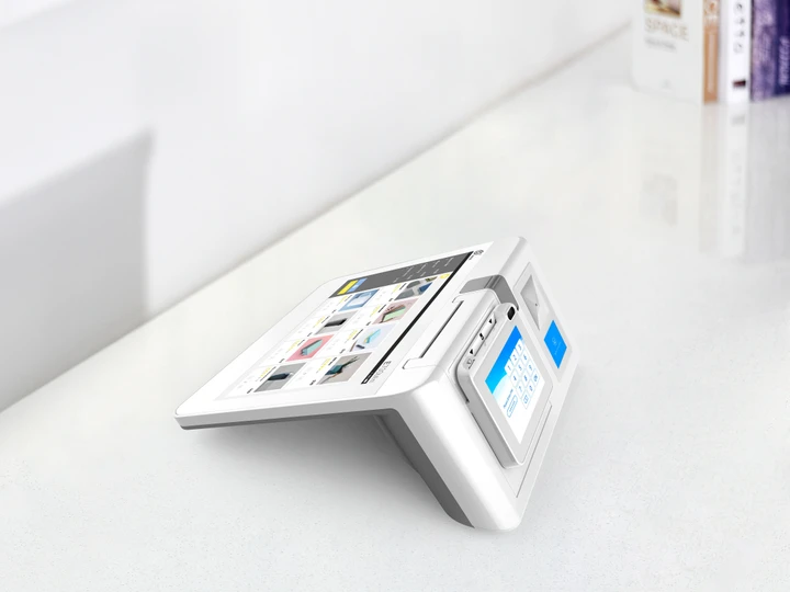 Caisse et terminal de paiement tout-en-un. La E700 est idéale pour les boutiques, restaurants et les hôtels à la recherche d’un matériel design, robuste et peu encombrant.